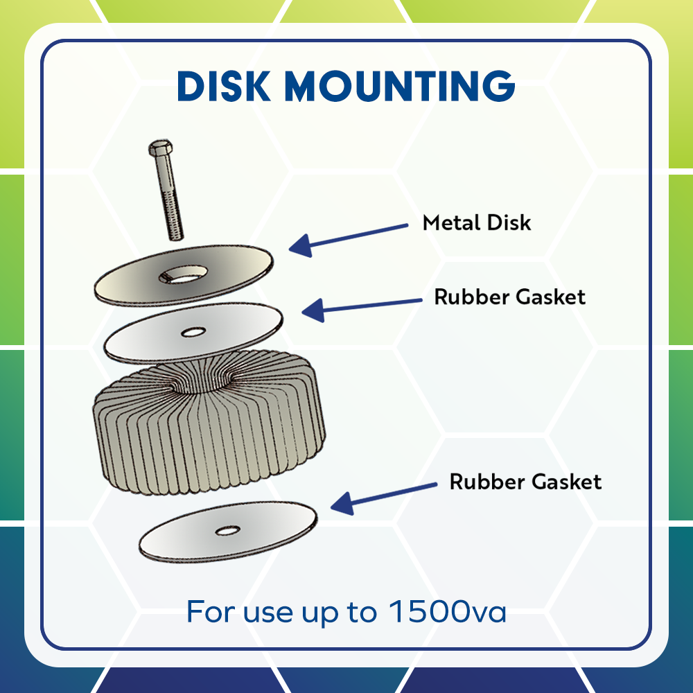A one bolt mounting scheme easily and quickly mounts the toroid, avoiding costly mechanical design and tooling charges associated with the first piece of custom conventional E-I laminated transformers.